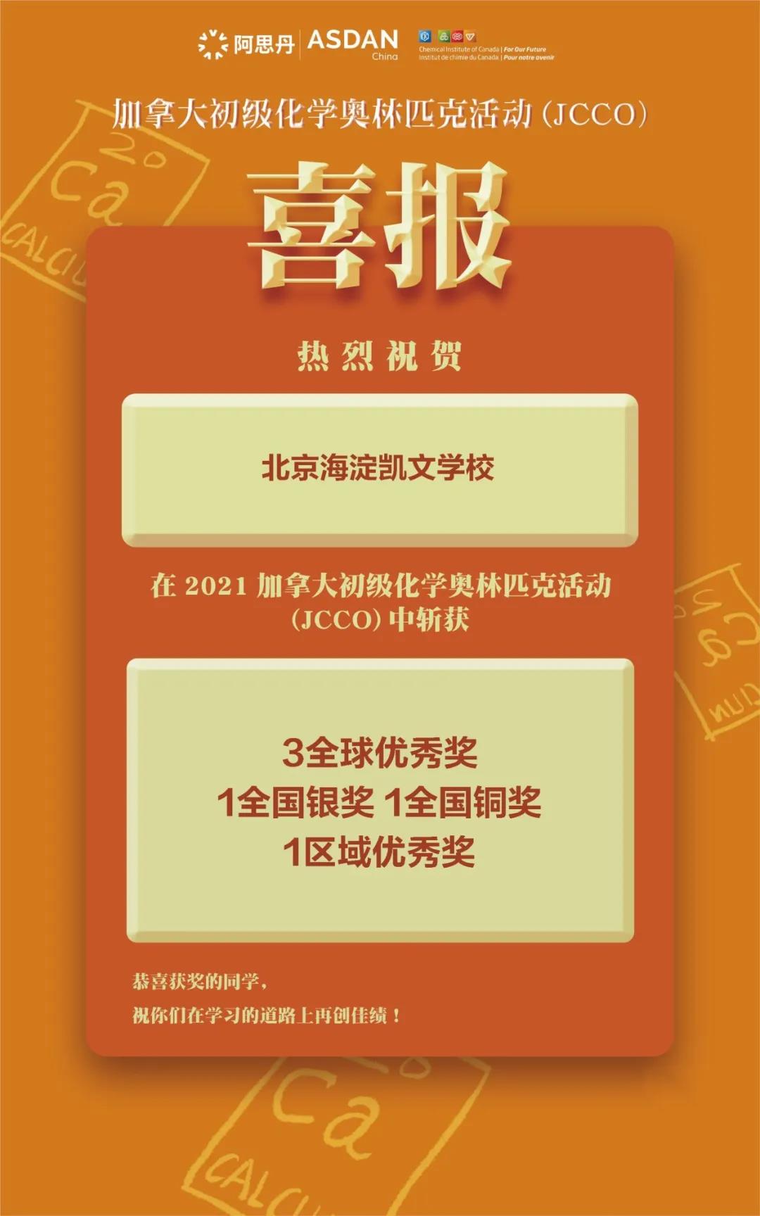 近期,加拿大初級化學(xué)奧林匹克活動(JCCO)落下帷幕,中國區(qū)超過310所國際學(xué)校和公立學(xué)校的近2600名初高中學(xué)生參加了此次活動。海淀凱文學(xué)子展現(xiàn)了過人的理科素養(yǎng)和扎實的學(xué)術(shù)功底并取得了優(yōu)異成績,收獲頗豐。