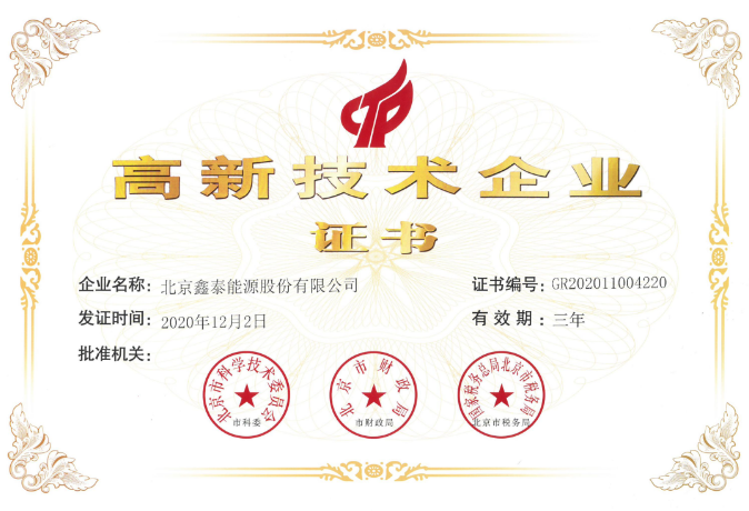 根據(jù)全國高新技術(shù)企業(yè)認(rèn)定管理工作領(lǐng)導(dǎo)小組辦公室下發(fā)的相關(guān)文件,鑫泰能源通過“國家高新技術(shù)企業(yè)”認(rèn)定,并由北京市科學(xué)技術(shù)委員會、北京市財政局、國家稅務(wù)總局北京市稅務(wù)局聯(lián)合頒發(fā)《高新技術(shù)企業(yè)證書》。這是鑫泰能源堅持“以科技為先導(dǎo)、以創(chuàng)新為動力”所取得的一項重大發(fā)展成果。該項證書的取得,不僅是公司一年多來堅持技術(shù)創(chuàng)新的有力詮釋,同時也代表著公司具備了自主創(chuàng)新的科技研發(fā)實(shí)力。