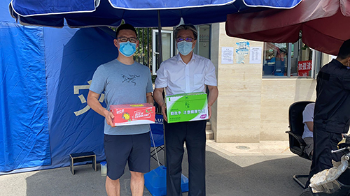 由于發(fā)生新發(fā)地批發(fā)市場聚集性疫情,北京市應(yīng)急相應(yīng)級別提升至二級,防控形勢十分嚴(yán)峻。面對疫情防控工作出現(xiàn)的新變化,海國投全體下沉黨員職工迅速行動起來,重啟下沉值守工作,繼續(xù)擔(dān)起社區(qū)防疫的重任。6月18日下午,公司黨委副書記、工會主席張澤根代表公司黨委,看望慰問值守在一線的黨員職工,為大家?guī)チ孙嬘盟?、口罩等防疫物資。