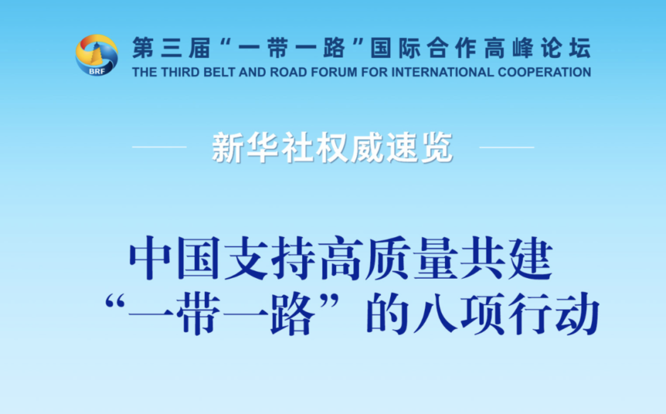 10月18日,國(guó)家主席習(xí)近平在第三屆“一帶一路”國(guó)際合作高峰論壇開幕式上發(fā)表主旨演講,宣布中國(guó)支持高質(zhì)量共建“一帶一路”的八項(xiàng)行動(dòng)。